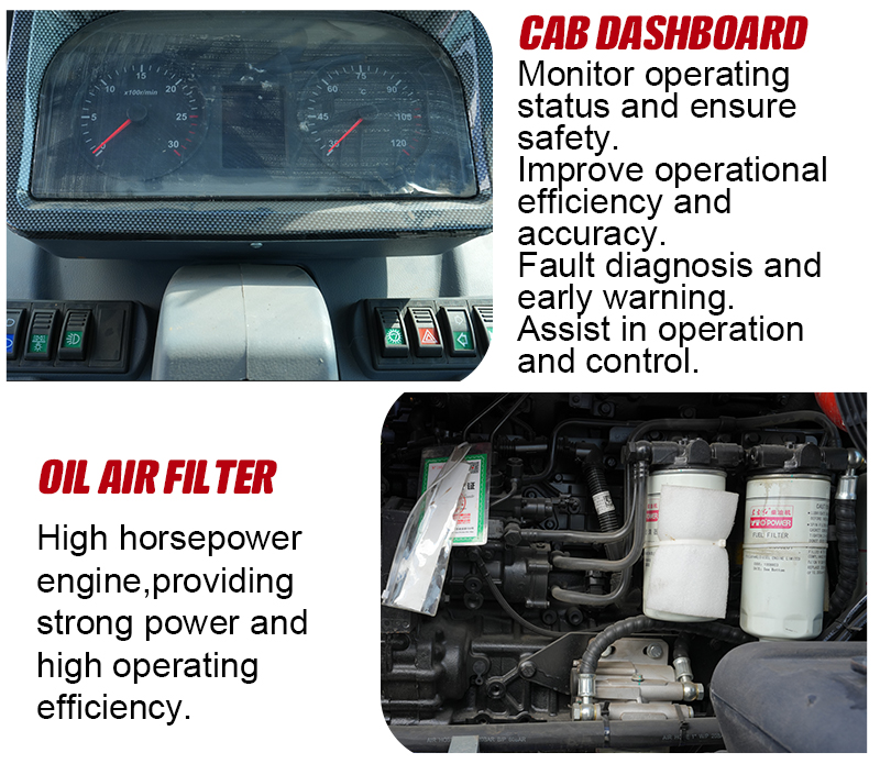 Equipped with branded diesel engine, globally guaranteed; Strong power and low fuel consumption; Equipped with a multi power and fuel-efficient switch, multiple adjustable modes, suitable for various operations, and more economical to use.